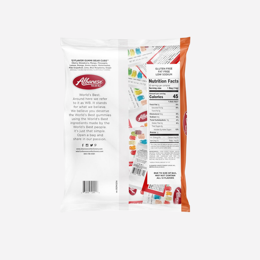 Albanese World's Best, Halloween 12 Flavor Gummi Bear Cubs®, 50-0.5oz Trick or Treat Bags of Halloween Candy