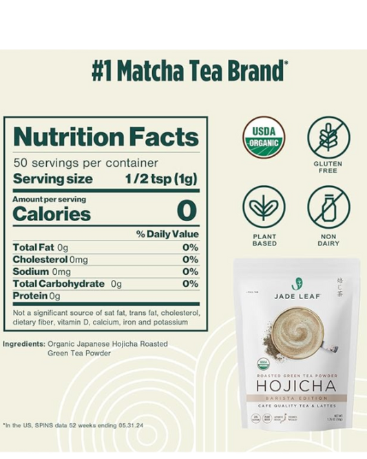 Jade Leaf Organic Hojicha Barista Edition Roasted Green Tea Powder 1 lb. (454g)(various sizes)