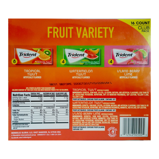 Trident Sugar-Free Gum Fruit Variety Pack 20 pk.