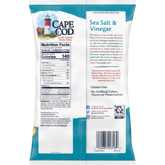 Cape Cod Potato Chips, Sea Salt & Vinegar Kettle Chips, 13 oz