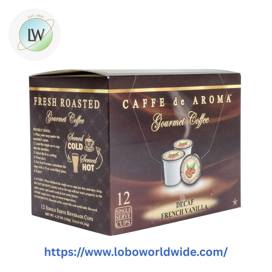 Caffe de Aroma Decaf French Vanilla Coffee Single Serve Cups - 12/Box