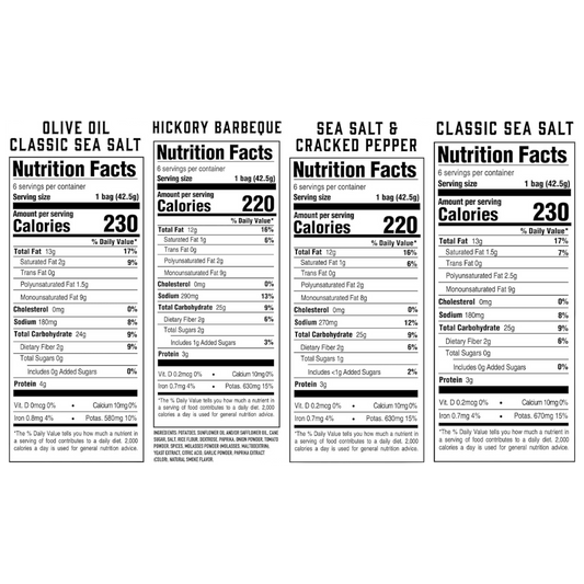 Boulder Canyon Kettle Cooked Potato Chip Variety Pack (24 Individual - 1.5 Oz Bags) of The Following Flavors: Olive Oil, Hickory Barbeque, Sea Salt and Sea Salt & Cracked Pepper