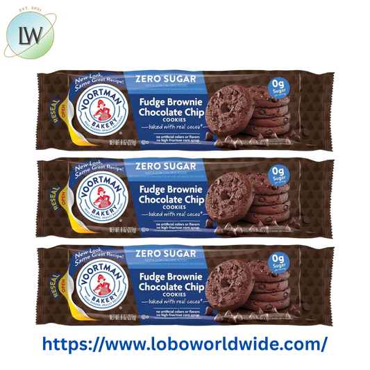 (3 pack) VOORTMAN Bakery Zero Sugar Fudge Brownie Chocolate Chip Cookies 8 oz