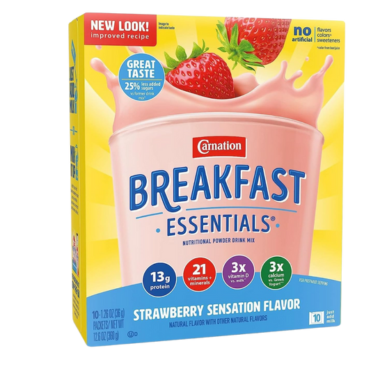 Carnation Breakfast Essentials Complete Nutritional Drink Rich Milk Chocolate/Classic French Vanilla/Strawberry Sensation Flavor 1.26 oz. 60 Ct