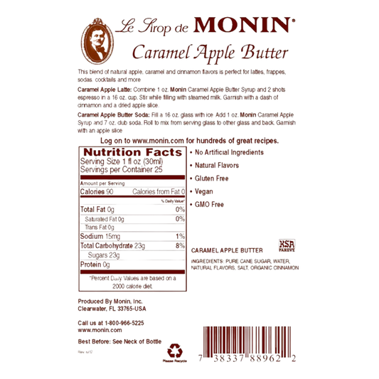 Monin Premium Caramel Apple Butter Flavoring Syrup 750 mL