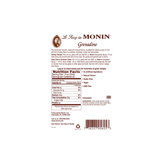 Monin Premium Grenadine Flavoring Syrup 1 Liter