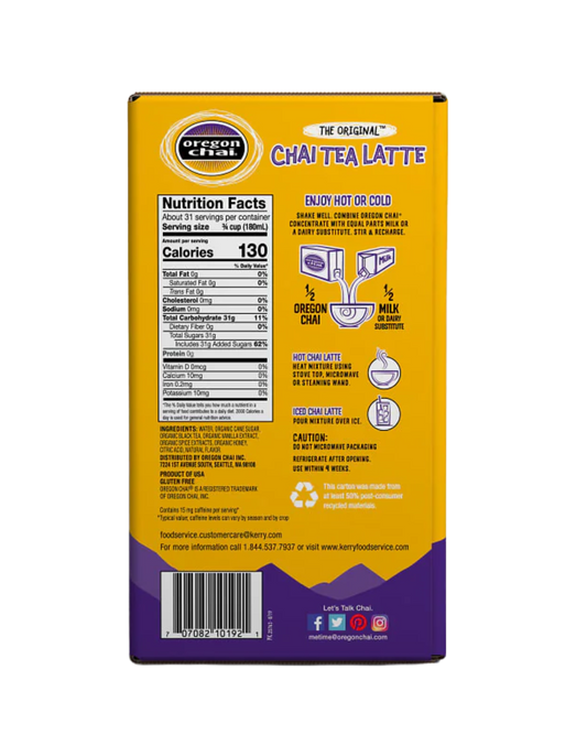 Oregon Chai Original Chai 5:1 Super Concentrate 1/2 Gallon