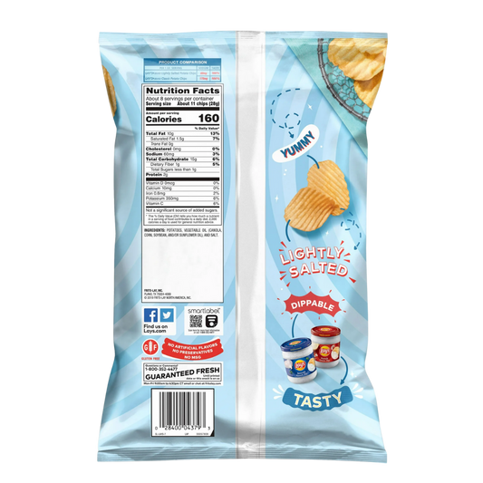Lay's Wavy Potato Chips Lightly Salted Snack Chips, 7.5 Ounce Bag