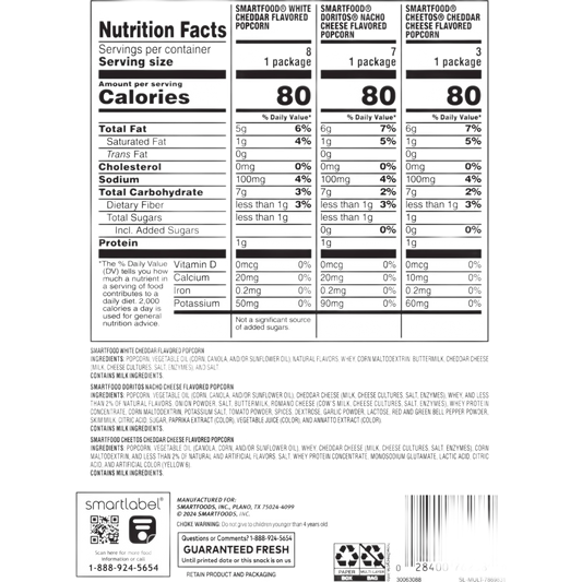 Smartfood Flavored Popcorn 3 Flavor Variety Pack Snack Chips, 0.5 oz Bags, 18 Count Multipack