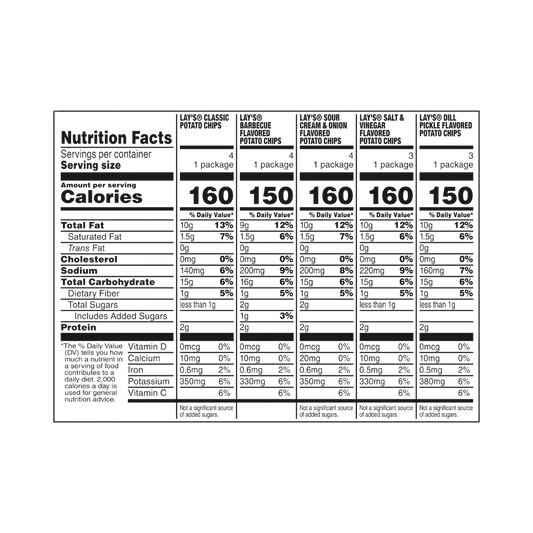Lay's Classic Potato Snack Chips, 1 oz Bags, 10 Count Multipack