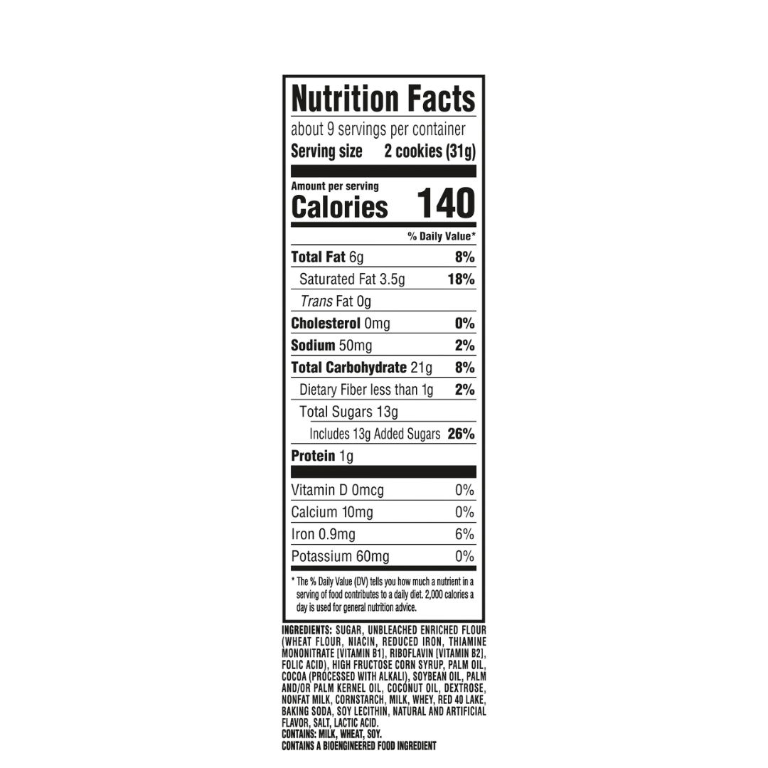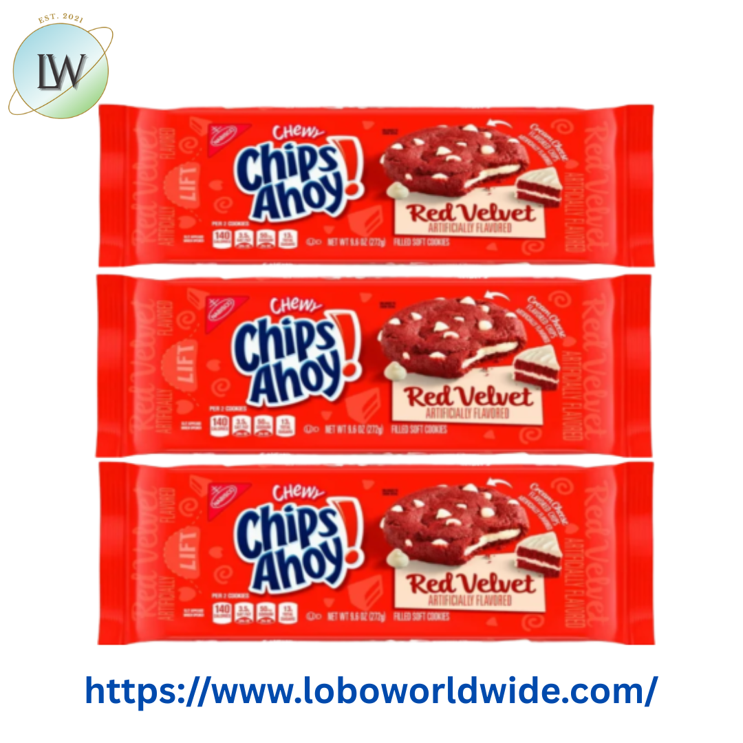 Enjoy 9.6 oz bags of Chewy Red Velvet Chip Cookies, featuring soft red velvet cookies topped with cream cheese-flavored chips and filled with a rich cream cheese-flavored center. These crowd-pleasers offer a perfect balance of sweetness and indulgence.