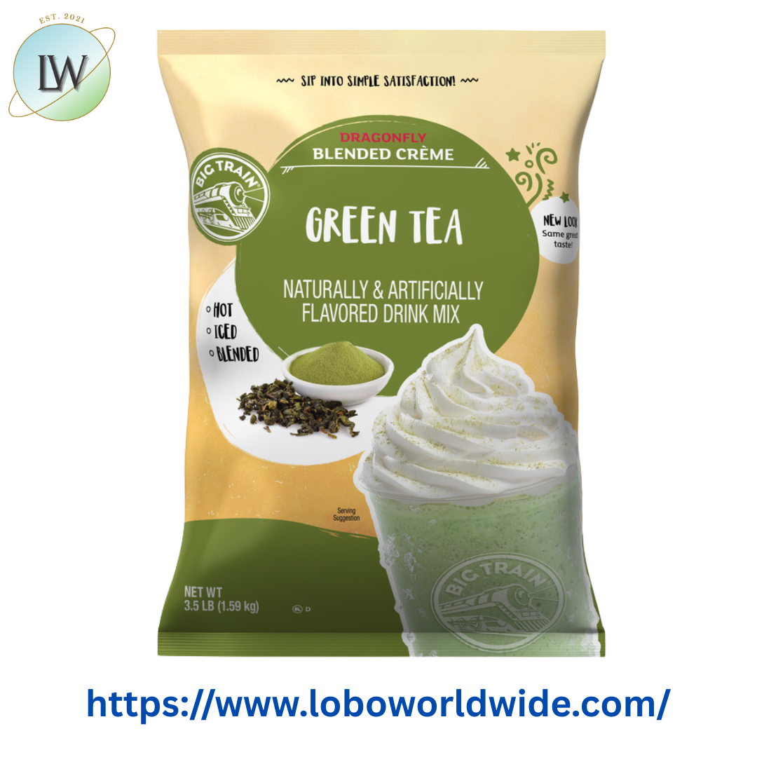 Enjoy the smooth, earthy taste of matcha with Big Train Dragonfly Green Tea Blended Crème Frappe Mix.