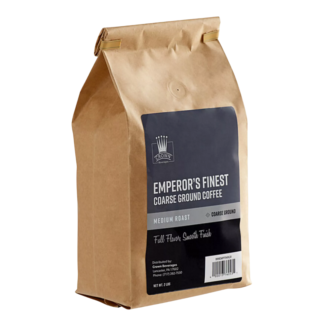 - Keep your establishment fully stocked with this 2 lb. bag of coarse ground coffee. This coffee is packaged as coarse ground beans, as opposed to whole beans, which allows for quicker service time and a lower labor cost! Coarse ground coffee is also the perfect consistency for a traditional french press, coffee urn, or for cold brewing. Featuring just the perfect kick of caffeine, this coffee has a balanced flavor, aroma, and acidity that will keep your patrons coming back for more.