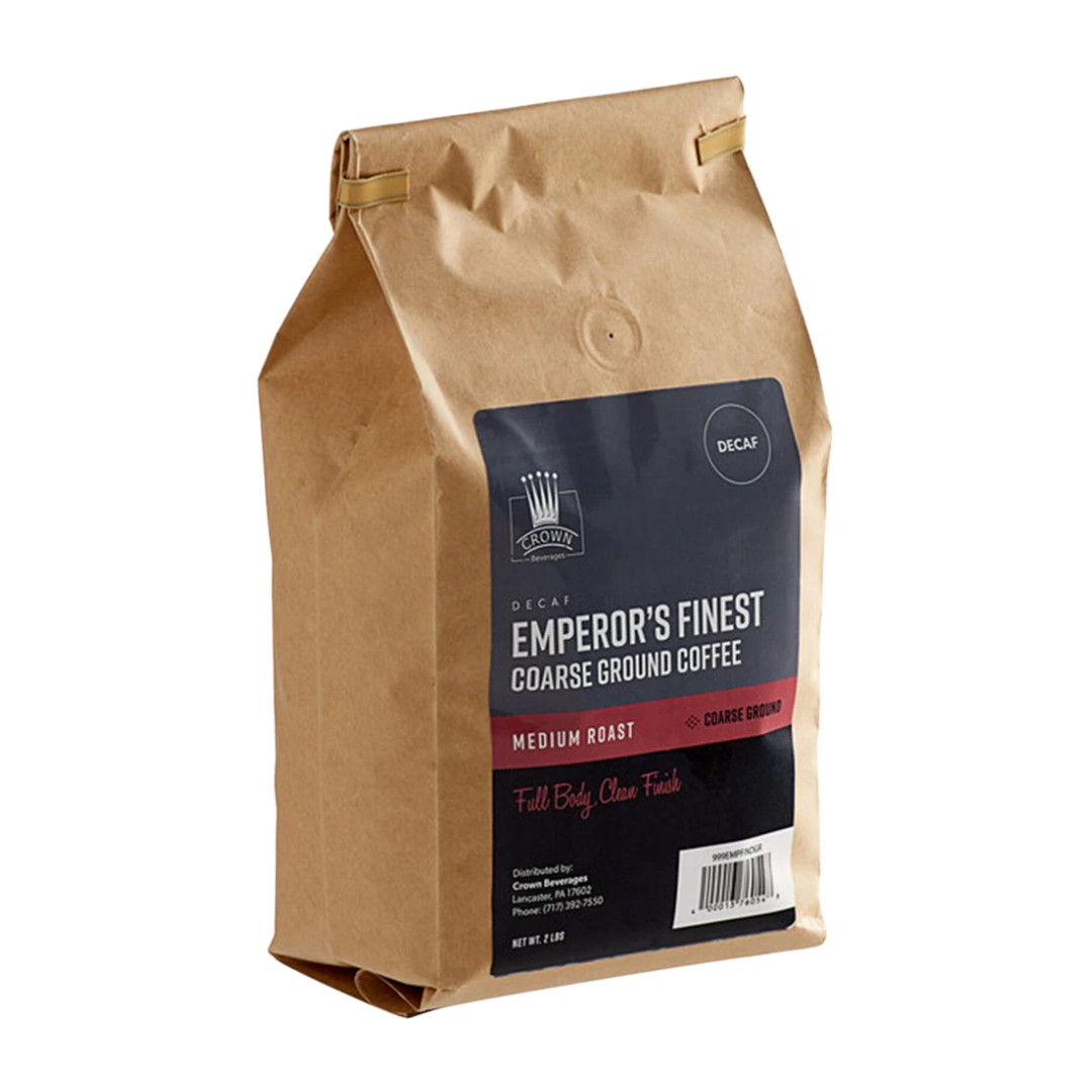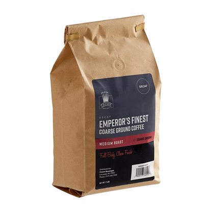 - Each package of coarse ground coffee contains the smooth, full-bodied taste and earthy aroma of carefully-selected, premium-quality coffee beans from Colombia that have been roasted to perfection. Serve up a hot cup of fresh-brewed black coffee, or pour over ice for a chilled coffee beverage that customers will love. For a truly customized and specialty coffee beverage, add a splash of flavoring syrup to each handcrafted cup. The possibilities are limitless with this full-bodied, premium coarse ground decaf coffee! The one-way degassing valve allows for carbon dioxide gasses to be released from the bag and prevents oxygen from entering the bag, thus reducing oxidation.