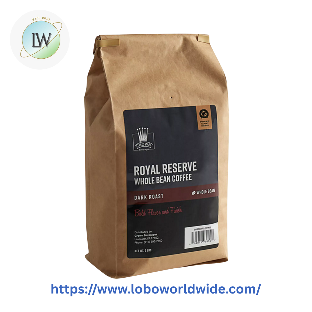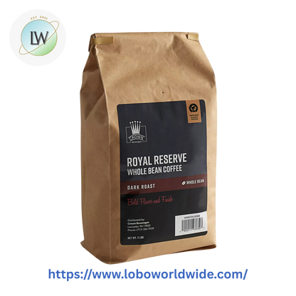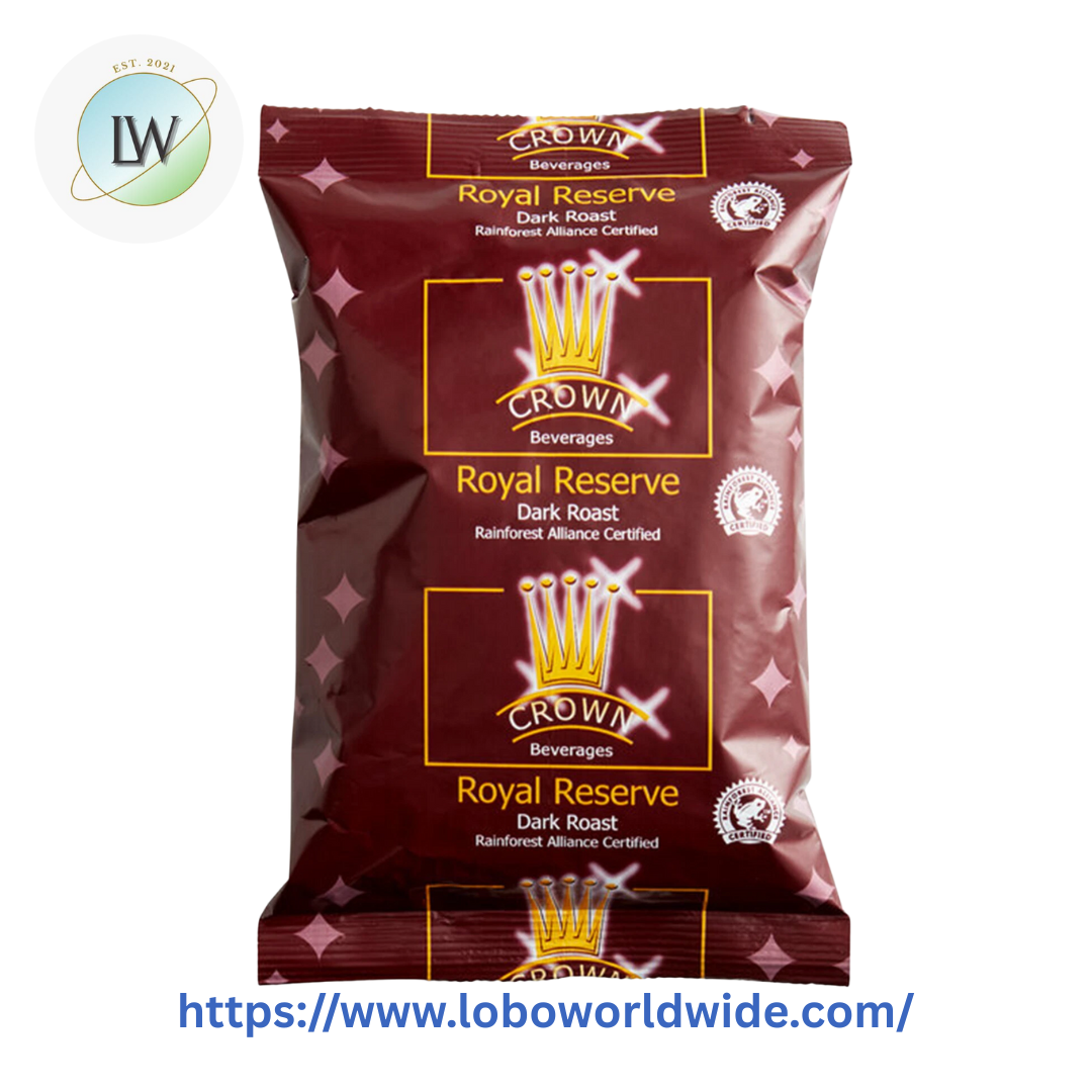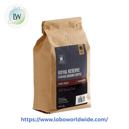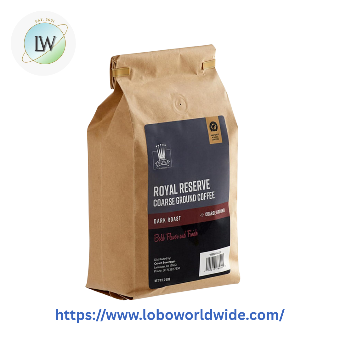- Featuring just the right amount of caffeine, this dark roast coffee creates a warm and inviting atmosphere that will keep your patrons coming back for more. The one-way degassing valve allows for carbon dioxide gasses to be released from bag and prevents oxygen from entering the bag, thus reducing oxidation. This helps maintain freshness and lock in the coffee's flavor and aroma to extend its life. Ideal for coffee shops, offices, and restaurants, this Crown Beverages Royal Reserve dark roast is the perfect pick-me-up for any setting.