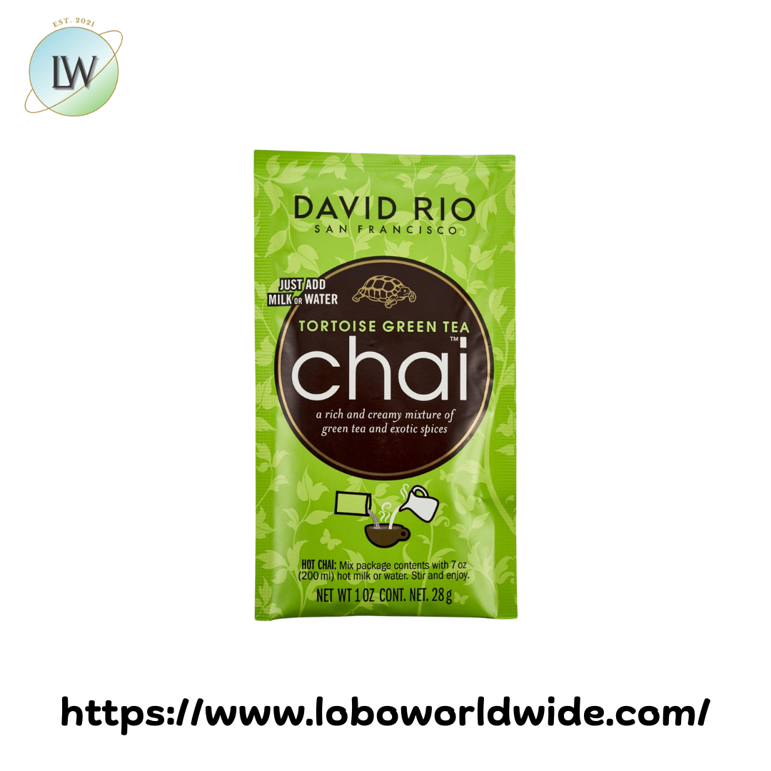 David Rio Tortoise Green Tea Chai Tea Latte Single Serve Packets - 12/Box