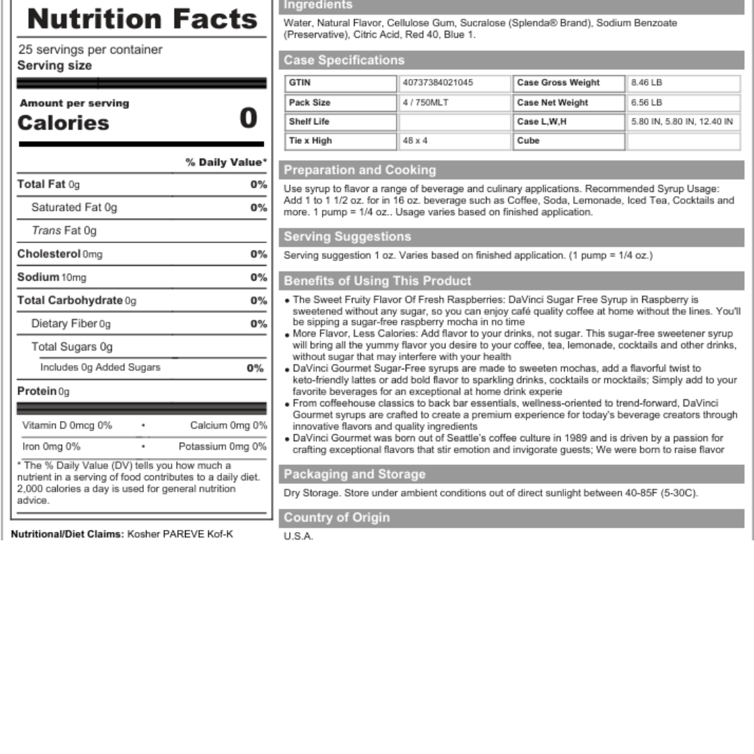 DaVinci Gourmet Sugar Free Raspberry Flavoring / Fruit Syrup