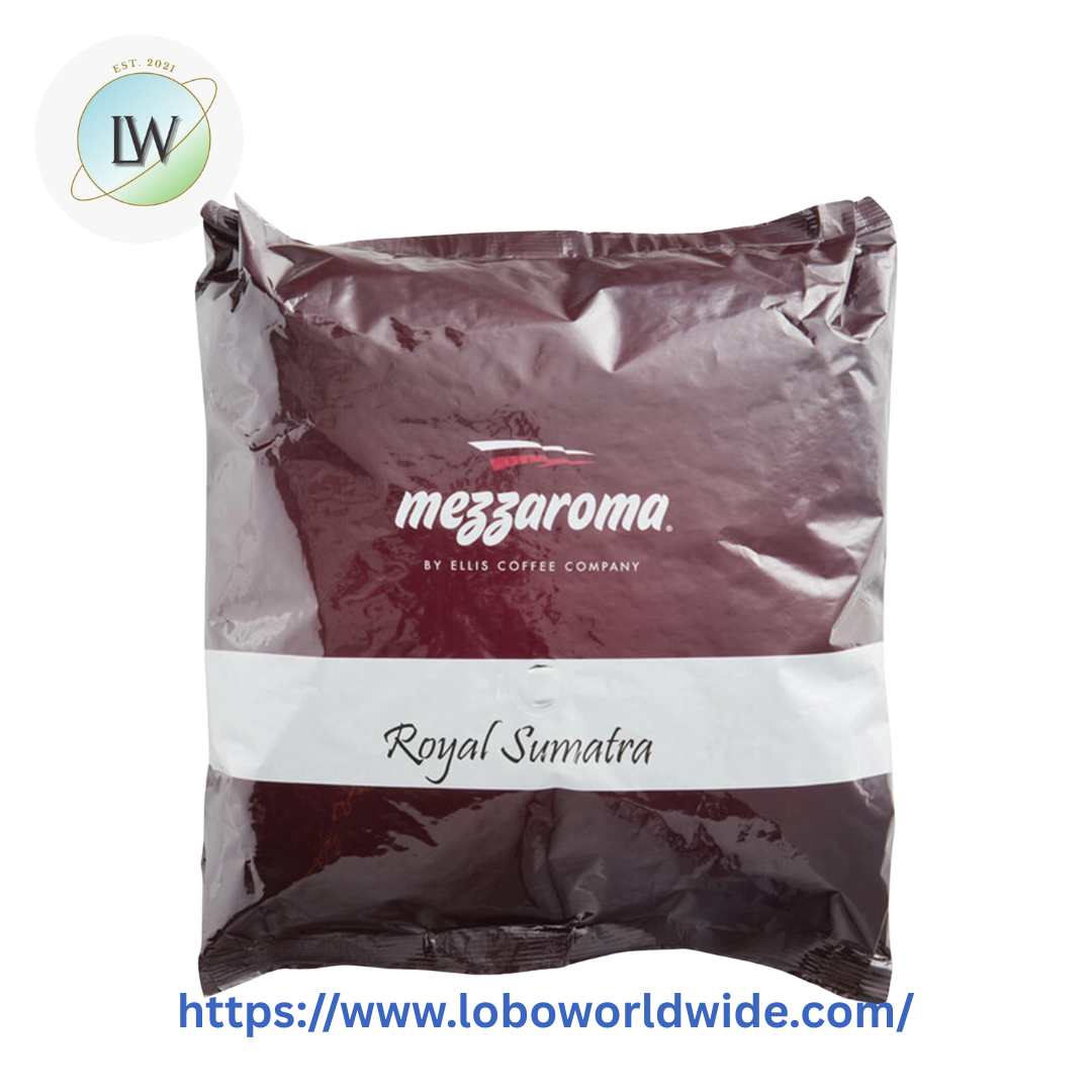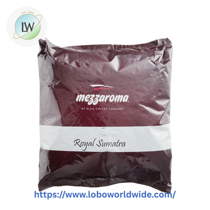 Satisfy your coffee connoisseurs with the rich flavors of this Ellis Mezzaroma Royal Sumatra whole bean coffee! For over 150 years, Ellis Coffee Company has followed the tradition of providing customers with high-quality and great tasting products. Warm and inviting, this coffee is the ideal addition to your beverage service. Each package of whole bean coffee contains the earthy taste and herbal aroma of carefully selected coffee beans that have been roasted to perfection. This coffee is packaged as whole beans, as opposed to pre-ground, which allows each and every cup to be individually ground immediately prior to brewing for optimum flavor and freshness! By waiting to grind just before you brew, you are helping this premium coffee to retain its robust flavor and aroma for the ultimate experience. Tailor the coarseness of the grind to your desired brewing method and brew the perfect cup of coffee! Coffee enthusiasts won't be able to get enough of the comforting, full-bodied taste of this dark roast coffee. Filled with natural antioxidants, coffee is a great morning beverage choice for your more health conscious patrons as well! Serve up a hot cup of fresh-brewed black coffee, or pour over ice for a chilled caffeinated beverage that customers will love - the possibilities are limitless! In addition, this coffee's foil packaging helps the product to maintain freshness and flavor while in storage.
