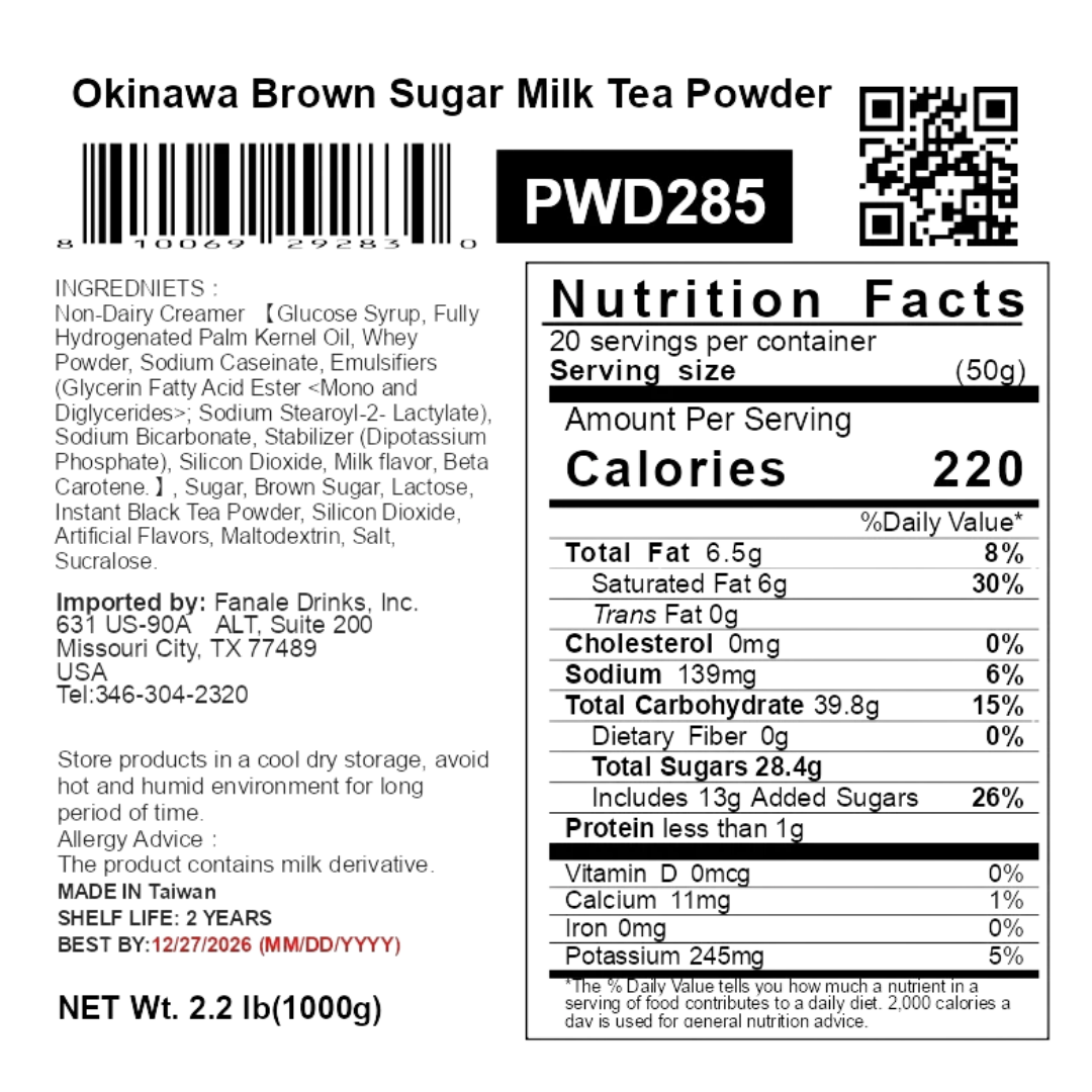 Fanale Okinawa Brown Sugar Milk Tea Powder Mix 2.2 lb.