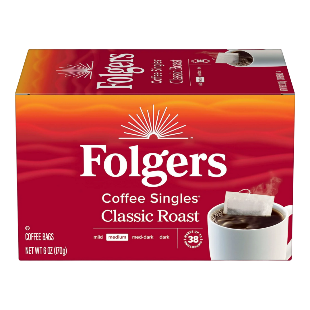 - Contains one (1) 38 count package of Folgers Coffee Singles Classic Roast Coffee Bags, 38 Count