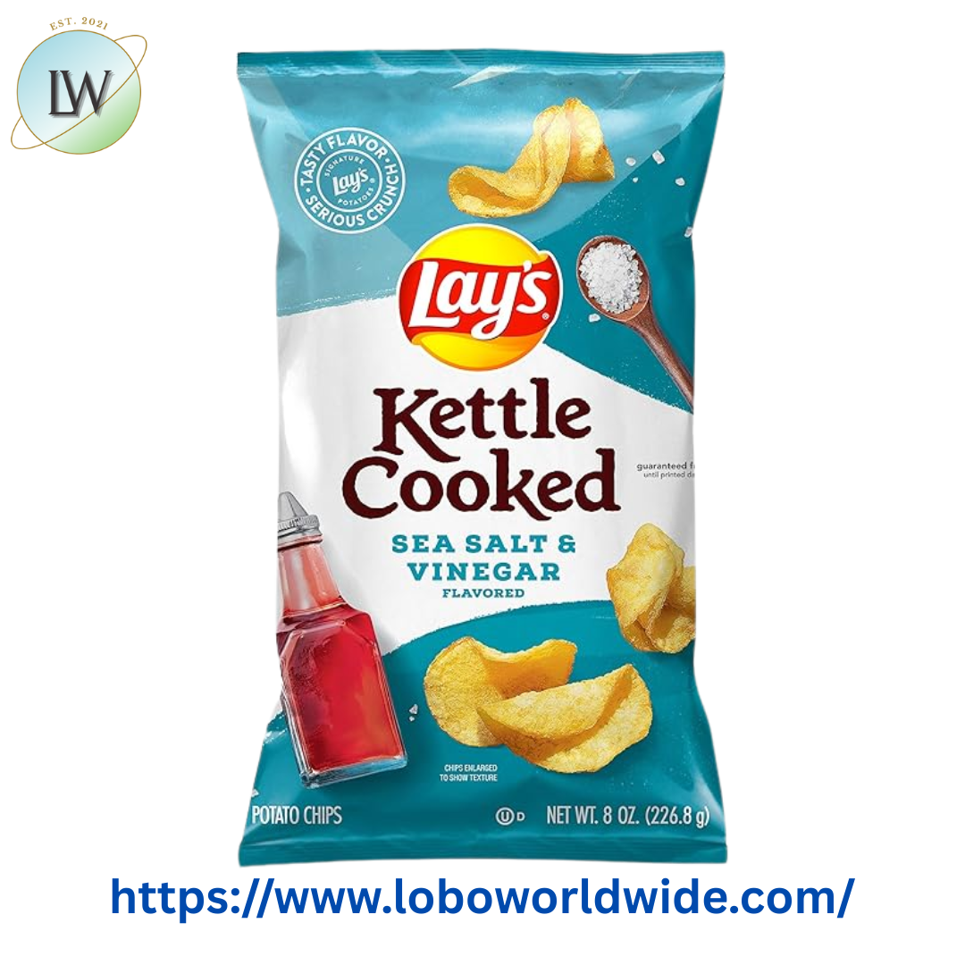 The 8oz bag of Lay's Kettle Cooked Potato Chips in Sea Salt & Vinegar flavor offers a generous amount, making it ideal for sharing at home or enjoying over multiple snack breaks. The convenient take-home pack ensures you always have a crunchy, tangy snack on hand.