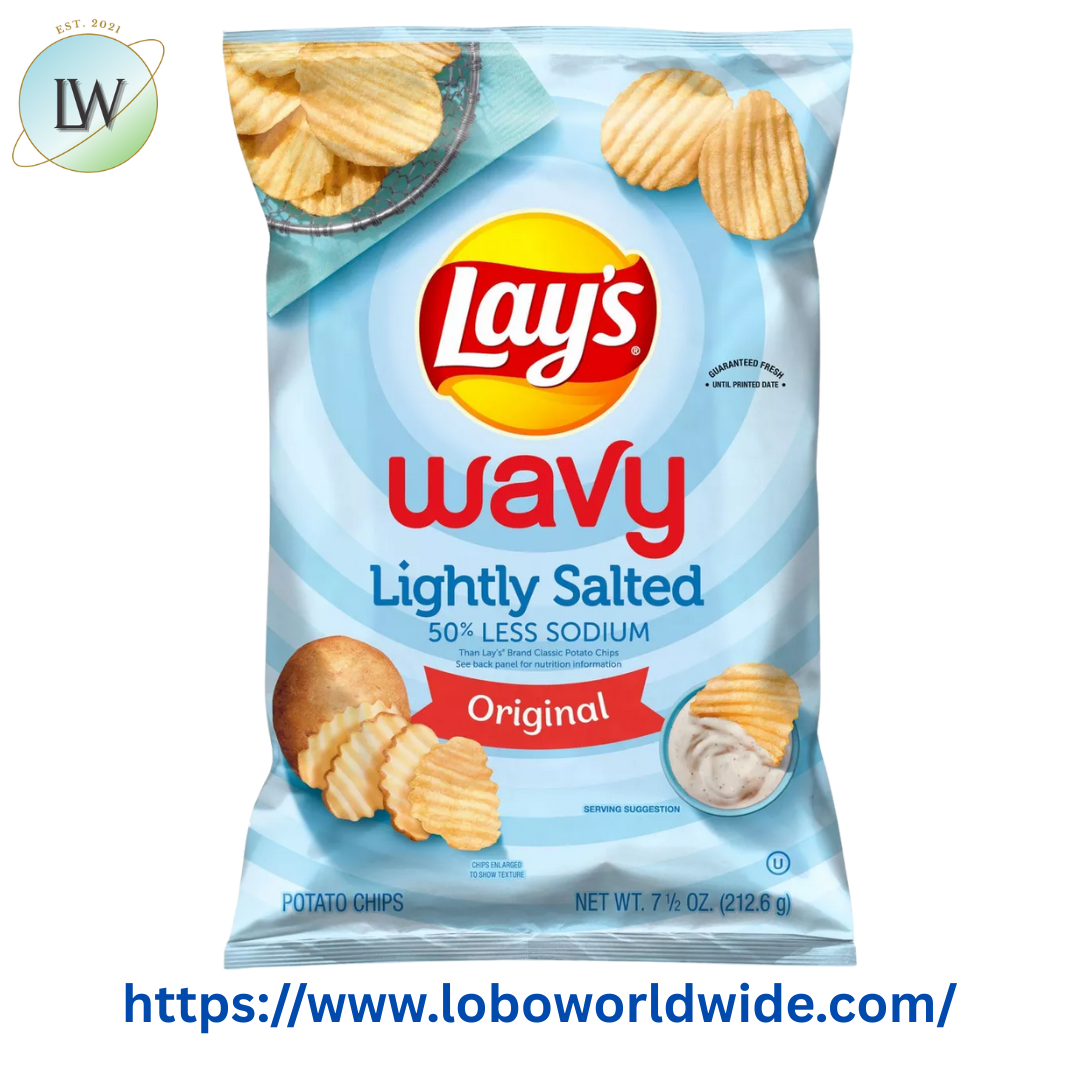 The 7.5oz bag of Lay's Wavy Lightly Salted Potato Chips in Classic flavor is ideal for sharing at parties, gatherings, or simply enjoying as a family snack. Its wavy texture offers extra crunch and holds up well to dips or spreads.