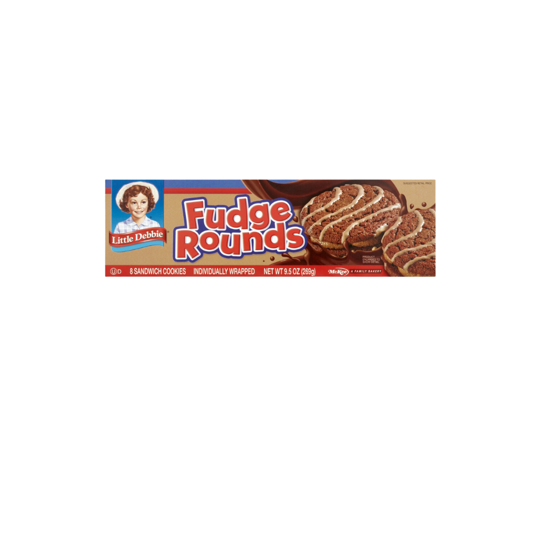 - (2) Two cartons of Fudge Rounds: Two chocolate cookies with chocolatey creme and a wave of icing. Each sandwich cookie has a delicious chocolatey creme between two chocolate cookies and is topped with an even more yummy chocolatey icing.