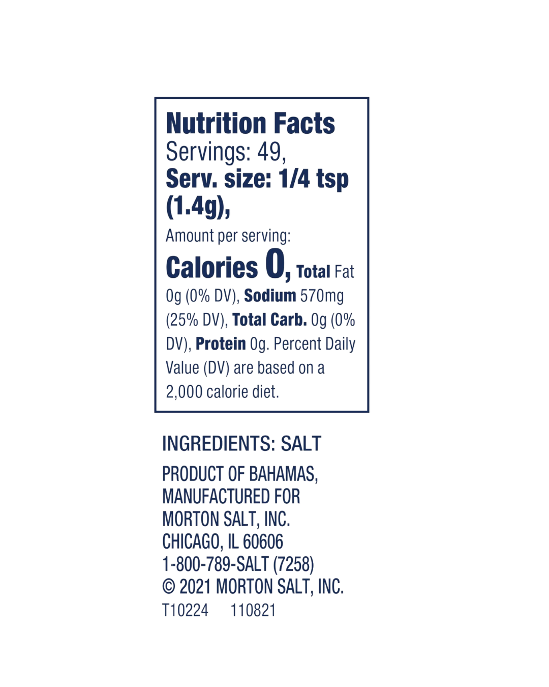 Premium Morton sea salt with a fresh-grind flavor for cooking and seasoning