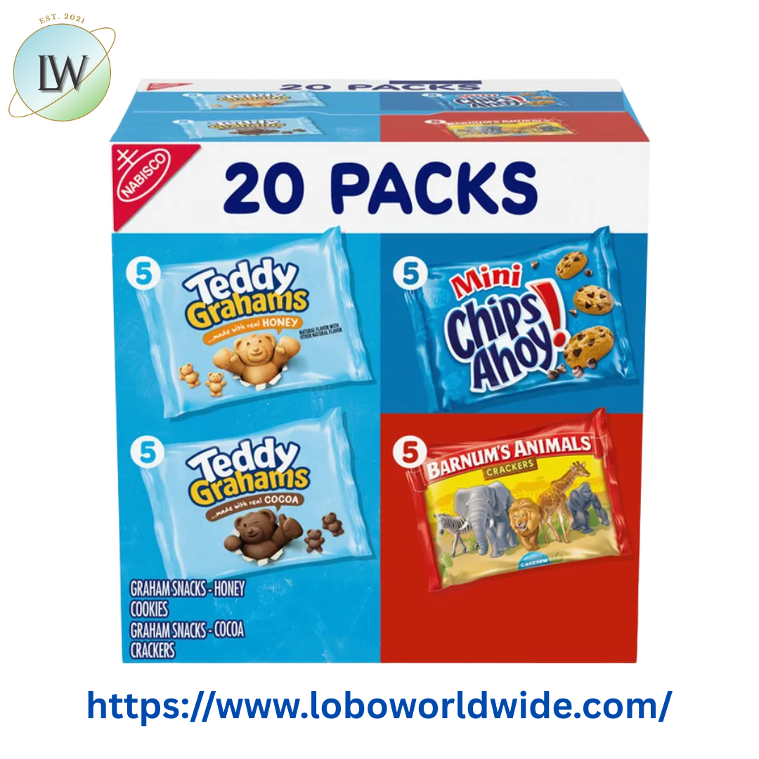 Fun Variety for Everyone: Enjoy a mix of classic Nabisco favorites—Barnum’s Animal Crackers, Teddy Grahams, and CHIPS AHOY! Chocolate Chip Cookies.