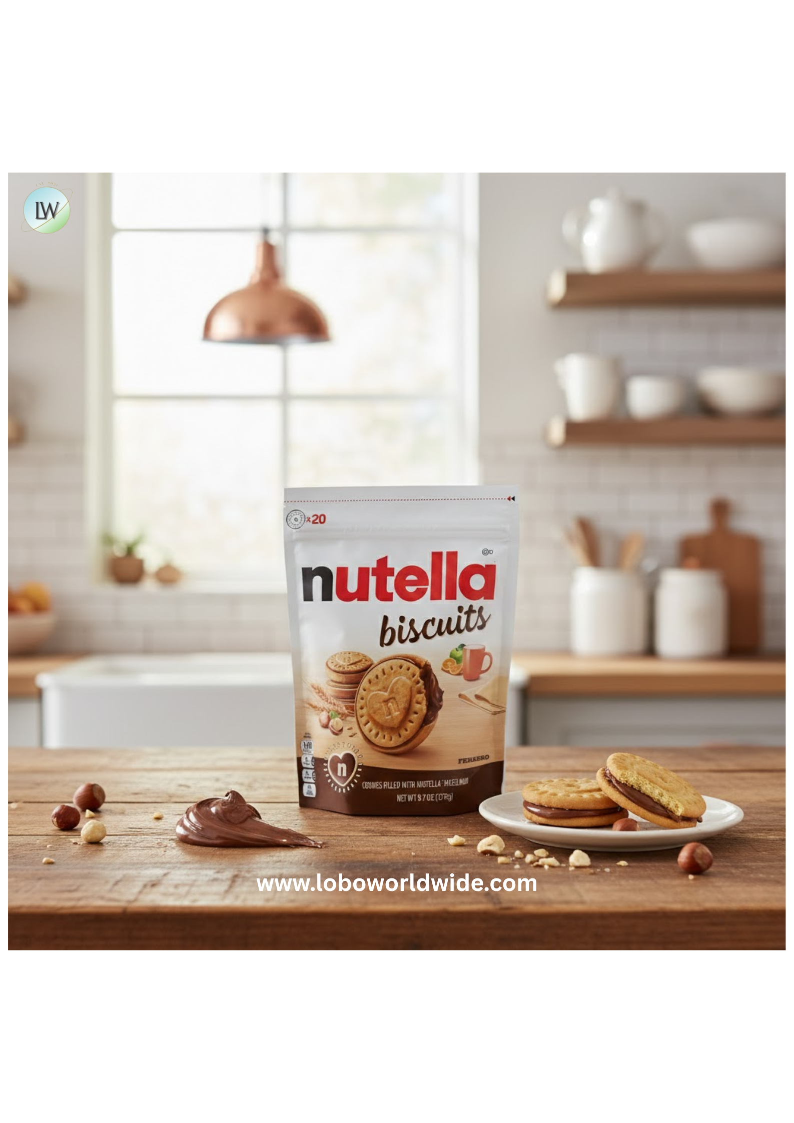 - Delicious Nutella Biscuits filled with the signature Nutella hazelnut and cocoa spread inside a golden, crunchy biscuit shell.