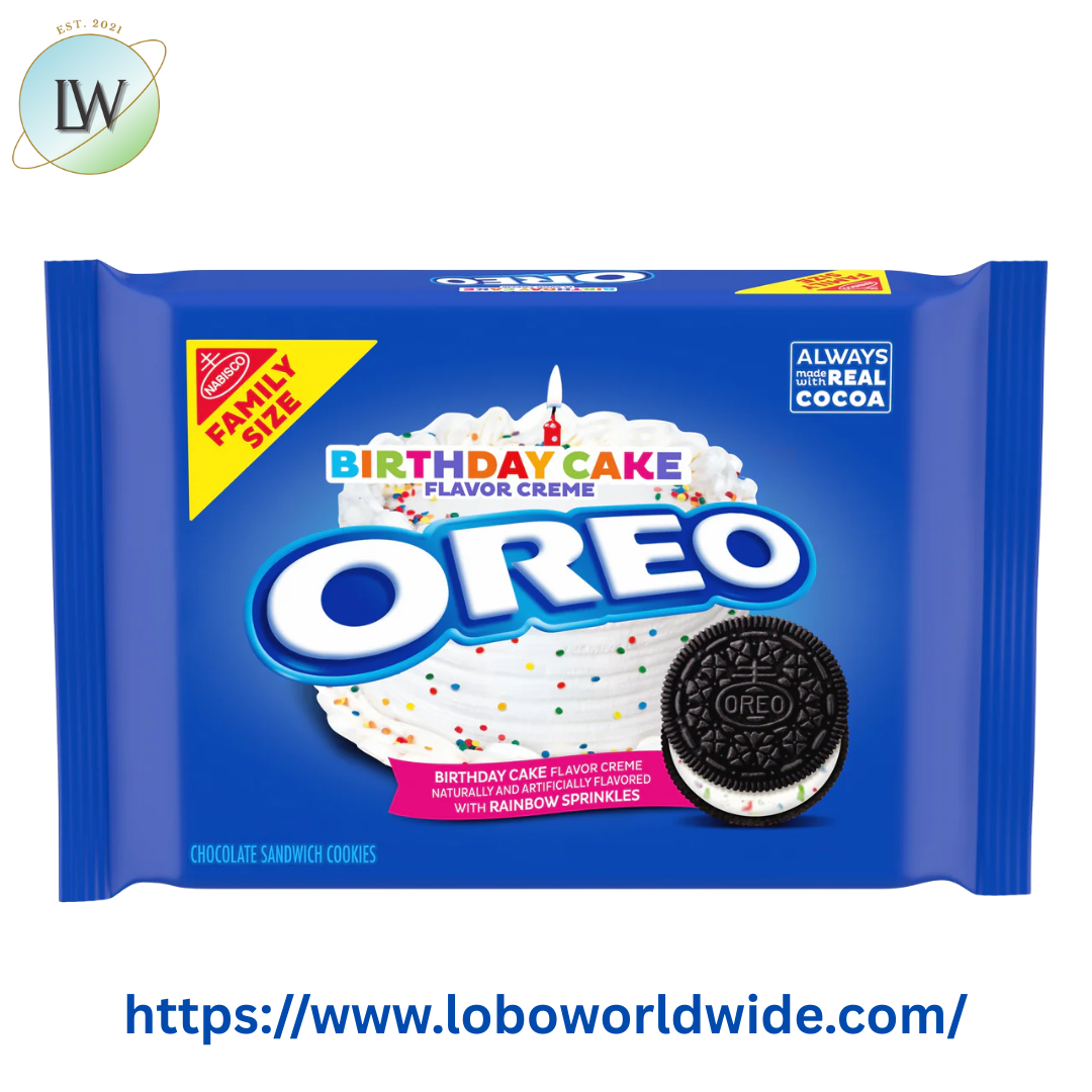 OREO Birthday Cake Creme Chocolate Sandwich Cookies, Family Size, 17 oz