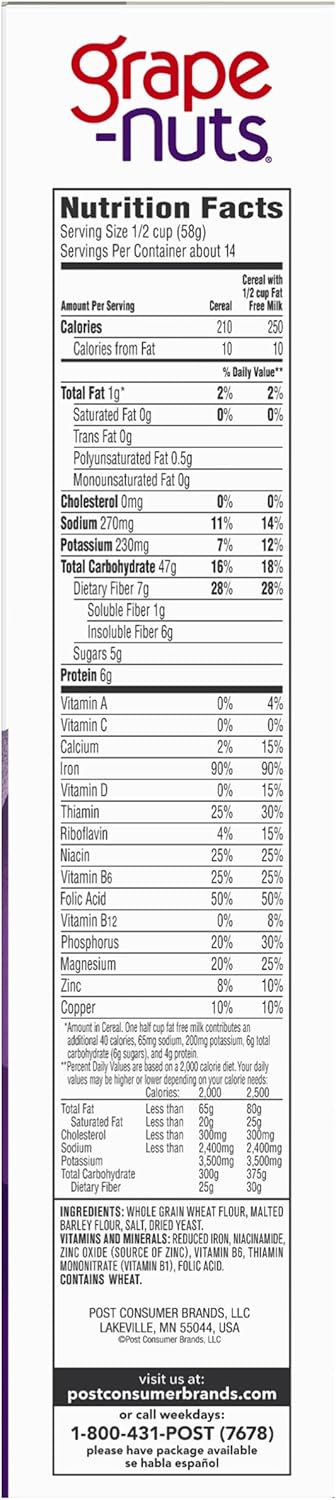 Whether you’re pushing through a workout or just trying to live a new lifestyle, Grape-Nuts® cereal, made of whole-grain wheat and barley, can help you feel full longer. It’s been a morning staple for more than a century, and now more than ever, it’s ready to help cereal lovers thrive. This item comes in a pack of 4, each box is 29 oz.