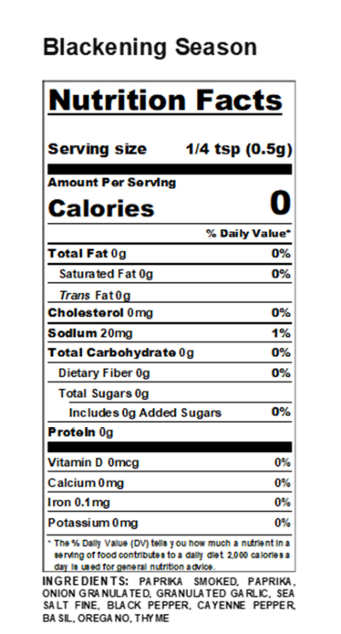 Authentic Blackened Blend: A flavorful mix of paprika, garlic, onion, cayenne, pepper, and herbs that delivers true Cajun-style taste.