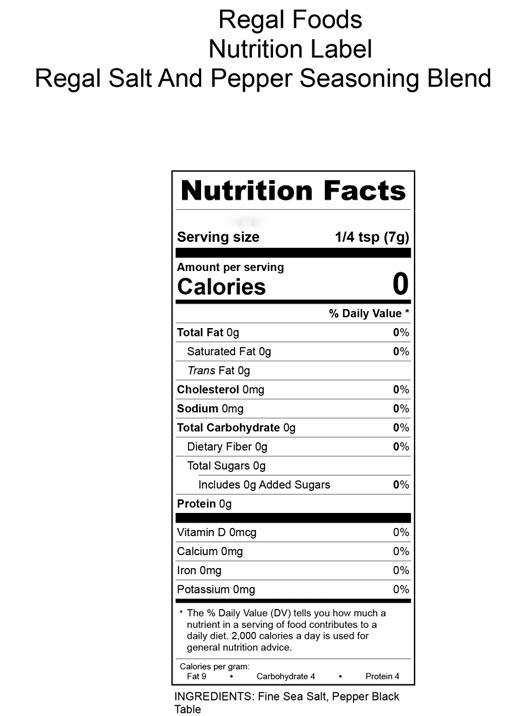 Enhance any dish with the classic flavor combination of salt and black pepper from Regal Salt and Pepper Seasoning Blend.