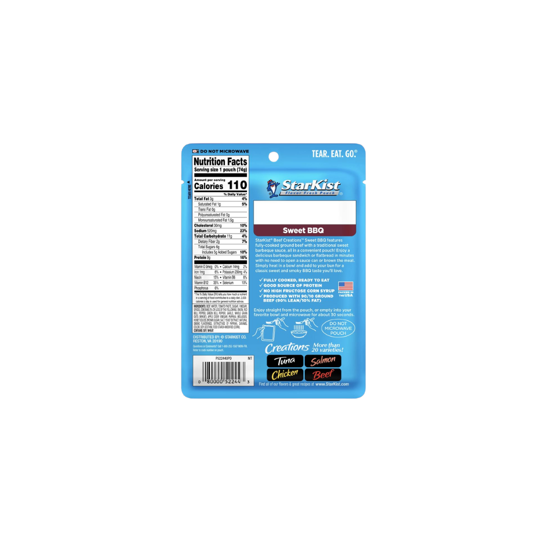 StarKist Beef Creations Sweet BBQ, 2.6 oz Pouch