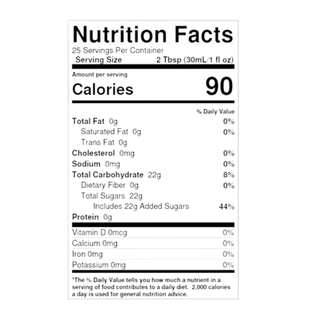 750 mL glass bottle fits standard syrup racks and pump systems.